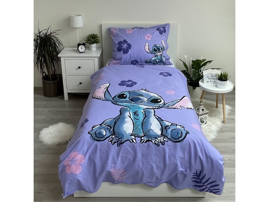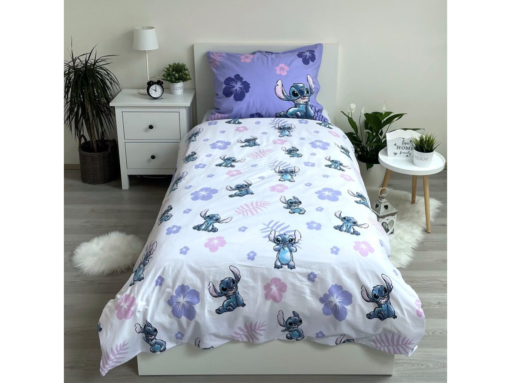 Užijte si hravé stlaní. Vytvořte z dětské postele místo plné fantazie a sladkých snů. Povlečte postel do dětského povlečení s veselým motivem, které má z jedné strany oblíbenou postavičku Stitche a z druhé strany květiny a lístky a menšího vzoru Stitche.