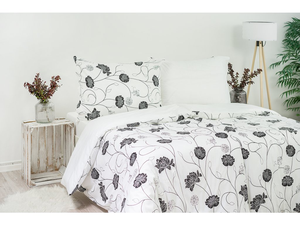 Nechte se okouzlit čistou elegancí oboustranného ložního povlečení astra černo-bílá. Z jedné strany bílý podklad zdobí po celé ploše originální květinový motiv v černých tónech. Druhá strana povlečení je čistě bílá bez vzoru. Černobílá sluší každému interiéru - vsaďte na osvědčenou klasiku v oblíbené kombinaci barev.