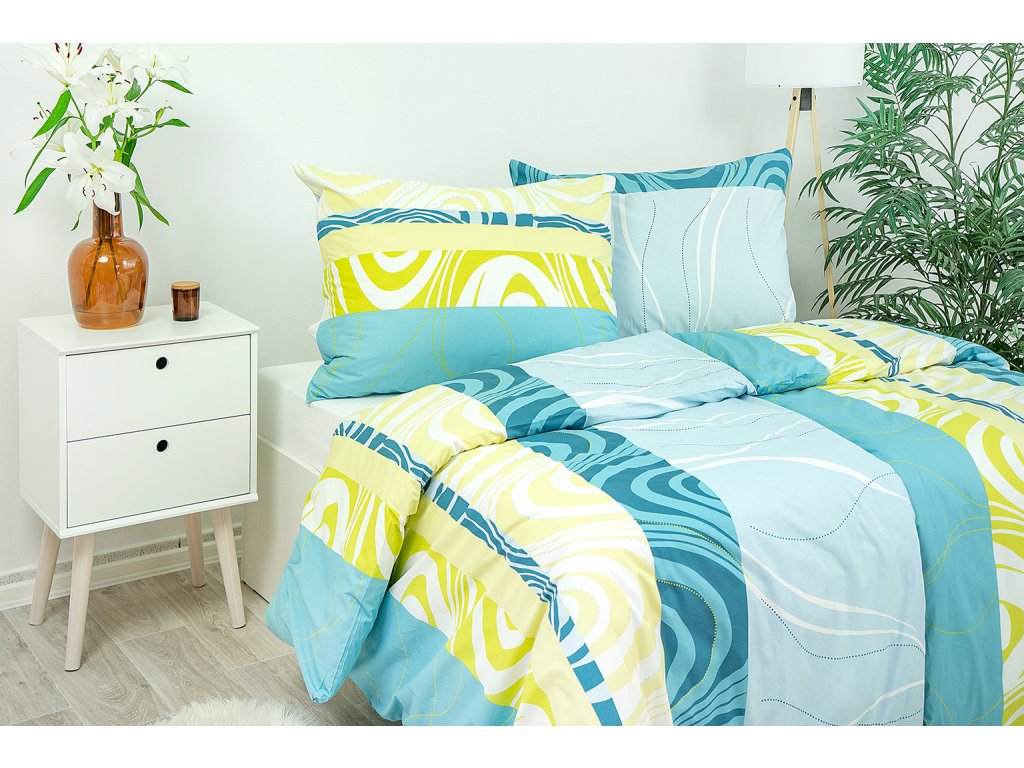 Zažijte lásku na první pohled. Letní kombinace barev a čisté linie vybízí k hravému stlaní. Působivý vzor promění vaši ložnici v dokonale elegantní místo. Povlečení je vyrobeno z bavlny, která je vzdušná, měkká a hebká na omak.