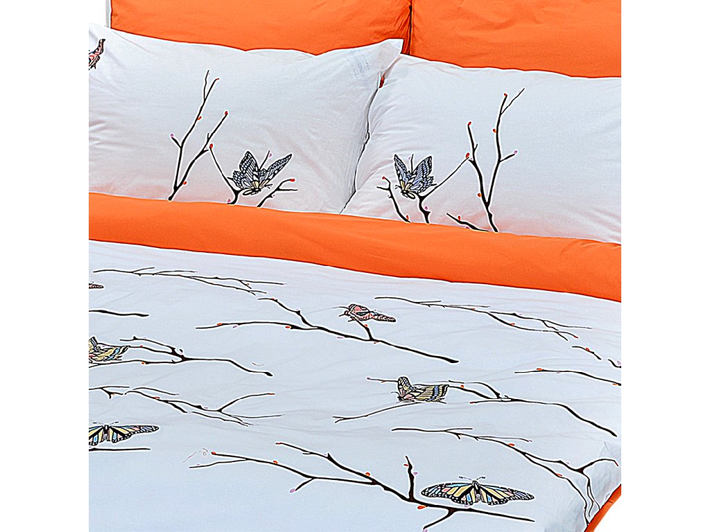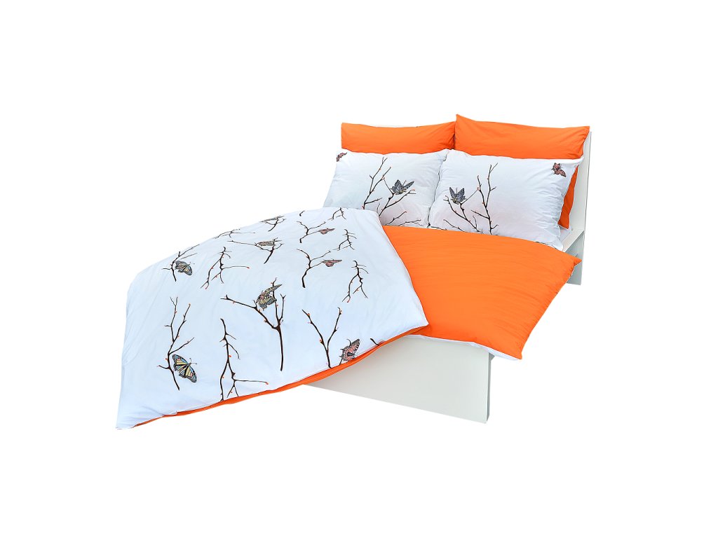 Oddejte se sladkému snění v oboustranné bavlněné ložní soupravě s motivy motýlků a větviček. Na jedné straně bílý podklad s barevnými motýlky na hnědých větvičkách a z druhé strany pouze oranžová barva vnese do Vaší ložnice jarní náladu. Látka je s vysokou hustotou přízí a jemností. Kvalitní barvení vám zaručí stálou barevnost látky.