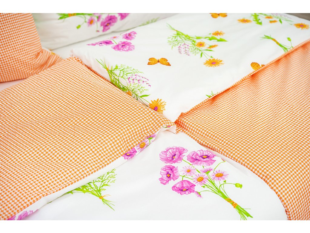Ložní povlečení bavlněné Stanex jaro oranžové (LS245), 140 x 200 + 90 x 70, Zip
