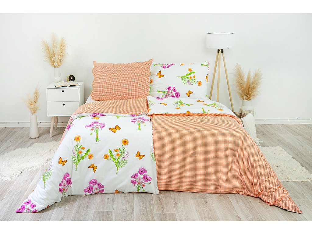 Ložní povlečení bavlněné Stanex jaro oranžové (LS245), 140 x 220 + 90 x 70, Knoflíkové