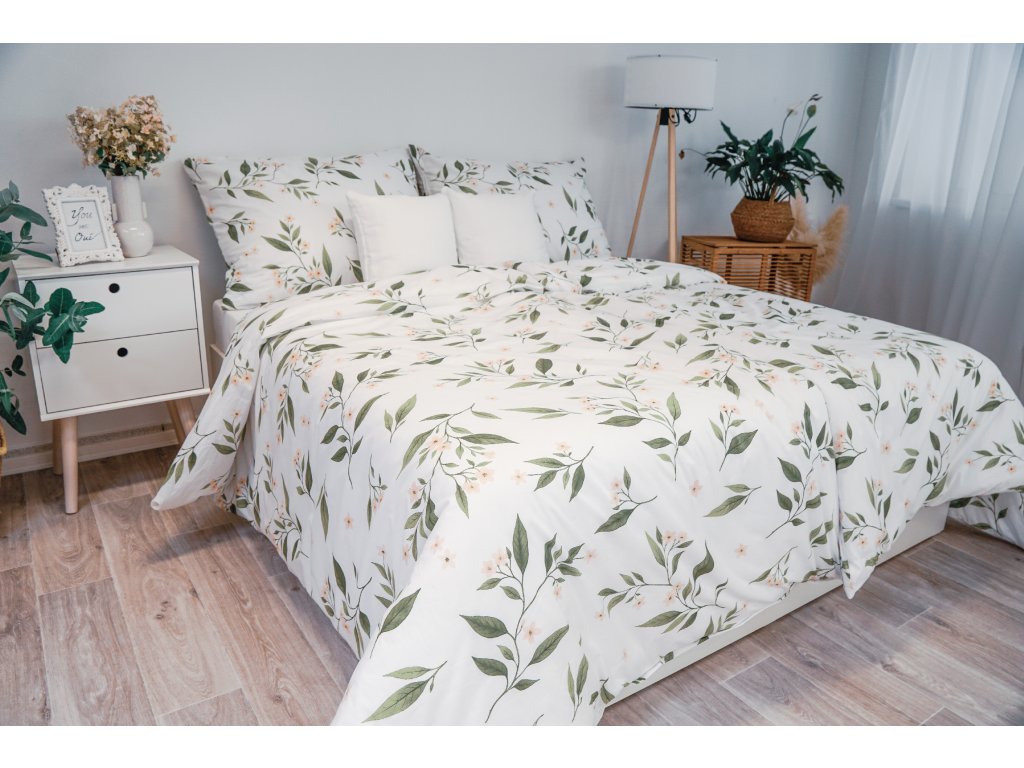 Bavlněné povlečení s jemným botanickým vzorem – zapínání na zip