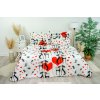 Povlečení plné energie s motivem koček a srdíček v atraktivním barevném provedení bílé, černé a červené. Povlaky na polštáře 90x70 cm a malé polštářky 40x40 cm jsou šité z metráže, kvůli rozmanitosti vzoru je každý jiný.