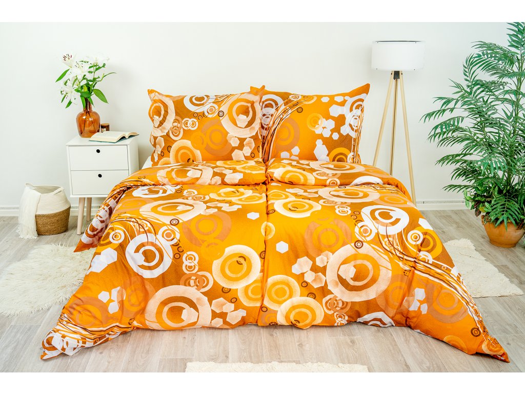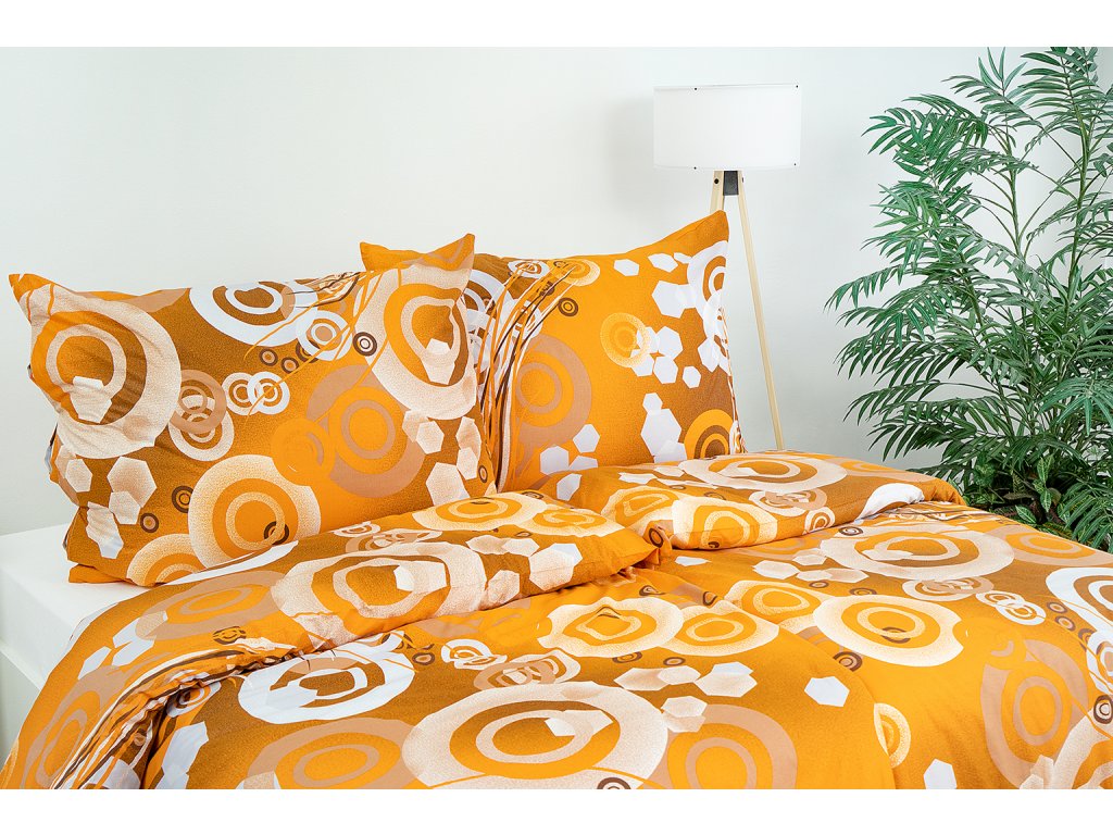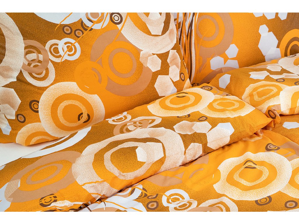Ložní povlečení bavlněné Stanex kruhy oranžové (LS65), 140 x 220 + 90 x 70, Knoflíkové