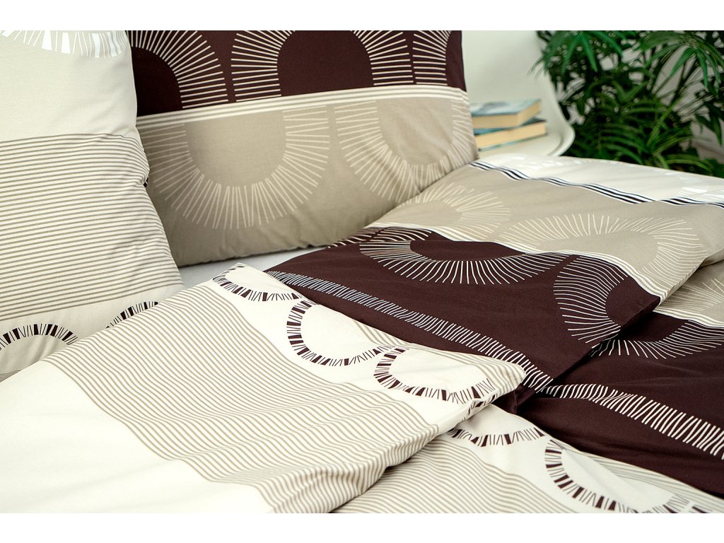 Elegantní povlečení z bavlny, v nápaditém designu. Ocení jej především ti, kteří mají rádi hnědou, smetanovou a šedou barvu. S tímto povlečením získá Vaše ložnice noblesní vzhled. Povlaky na polštáře 90x70 a malé polštářky 40x40 cm jsou šité z metráže, díky rozmanitosti vzoru je každý jiný.