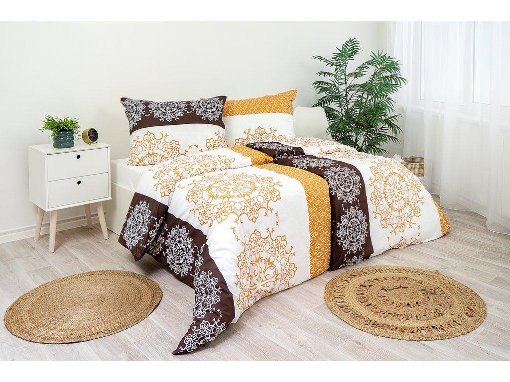 Ložní povlečení bavlněné Stanex mandaly hnědé (LS238), 140 x 220 + 90 x 70, Knoflíkové