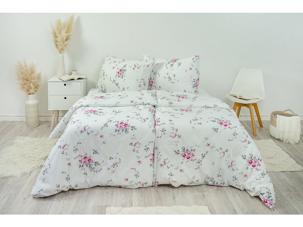 Něžný a čistotou zářící květinový motiv bude ozdobou každé romantické ložnice. Jednoduchý vzor růžových růžiček na bílém podkladu se bude vyjímat v každé ložnici.
