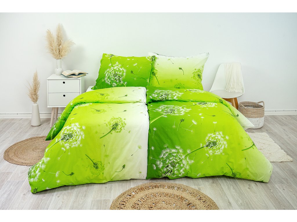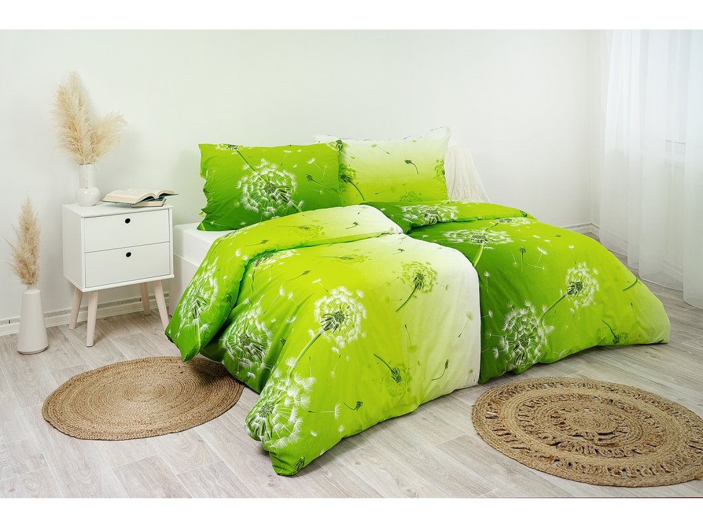 Ložní povlečení bavlněné Stanex pampeliška zelená (LS295), 140 x 220 + 90 x 70, Knoflíkové