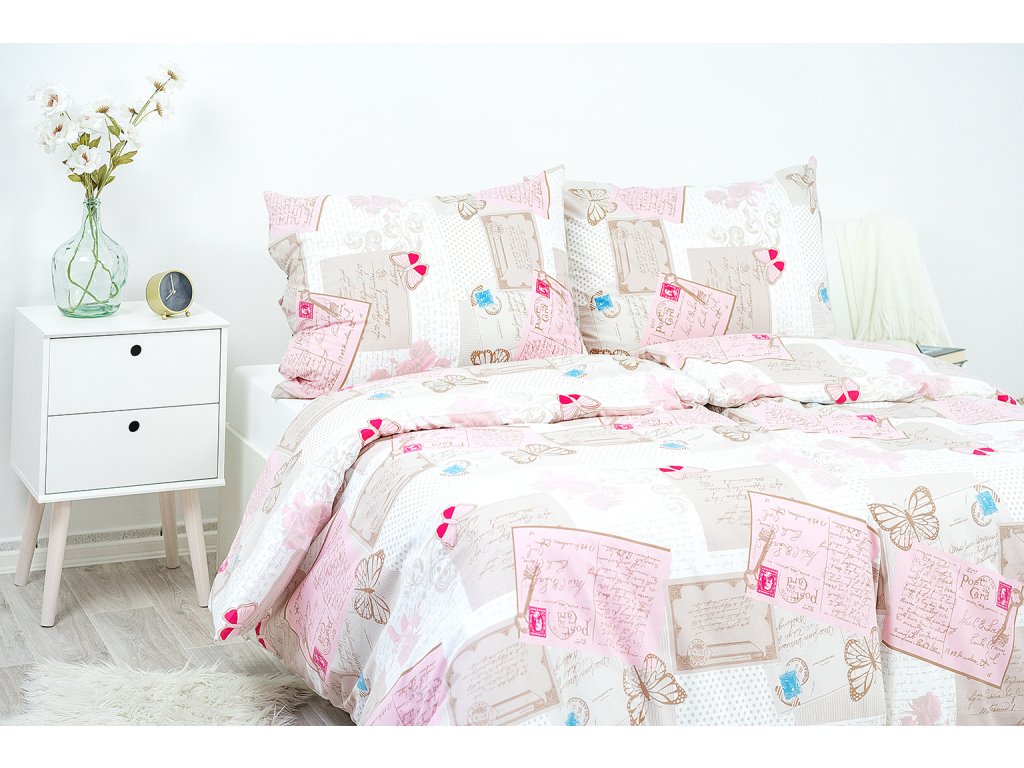 Ložní povlečení bavlněné Stanex pošta (LS189), 140 x 200 + 90 x 70, Zip