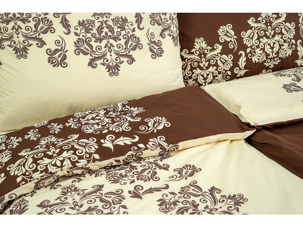 Ložní povlečení bavlněné Stanex venzel hnědý (LS157), 140 x 220 + 90 x 70, Knoflíkové