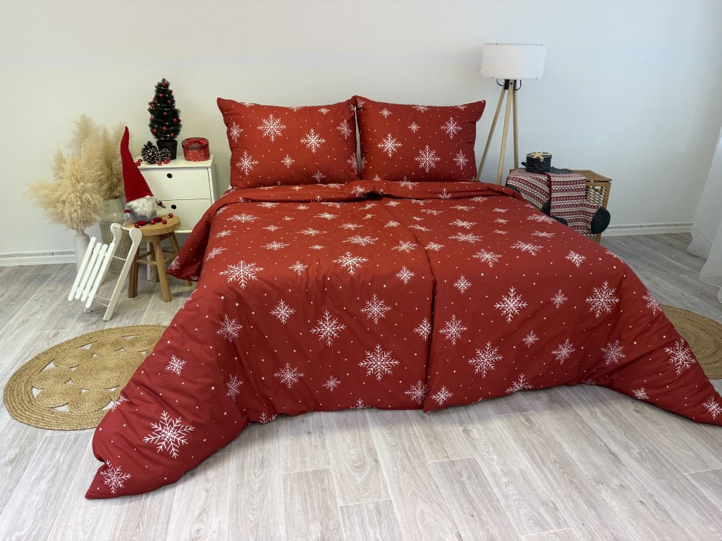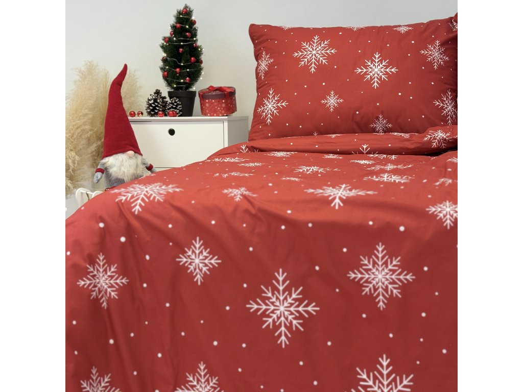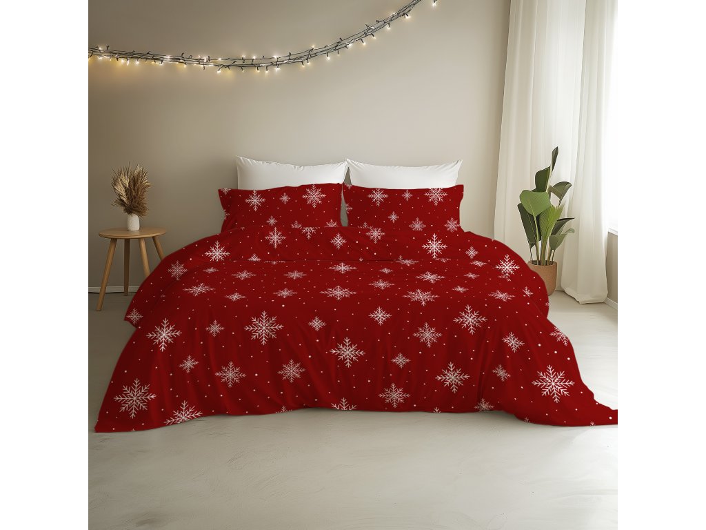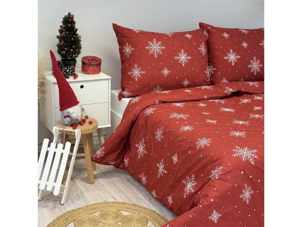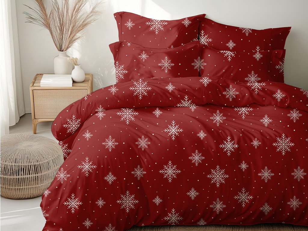 Vneste do své ložnice kouzlo zimní pohody s bavlněným povlečením červené vločky. Sytě červený podklad s jemnými bílými sněhovými vločkami vytváří hřejivou a sváteční atmosféru, která potěší v chladných dnech i během Vánoc.