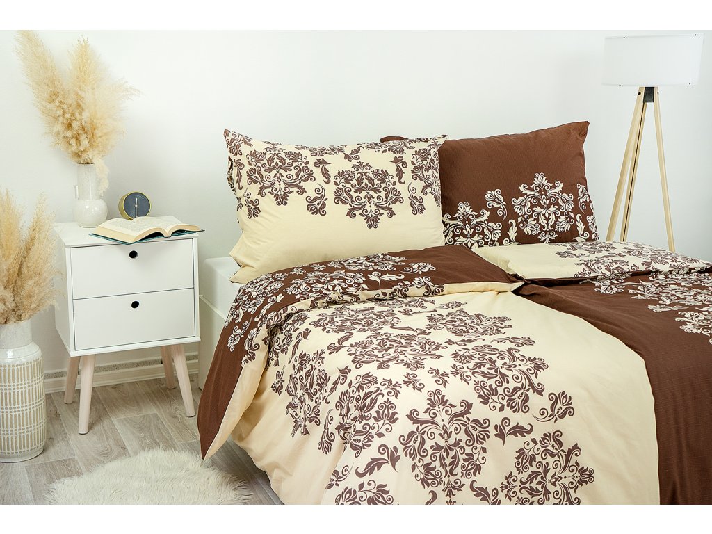Ložní povlečení bavlněný satén Stanex venzel hnědý (LS157), 140 x 220 + 90 x 70, Knoflíkové