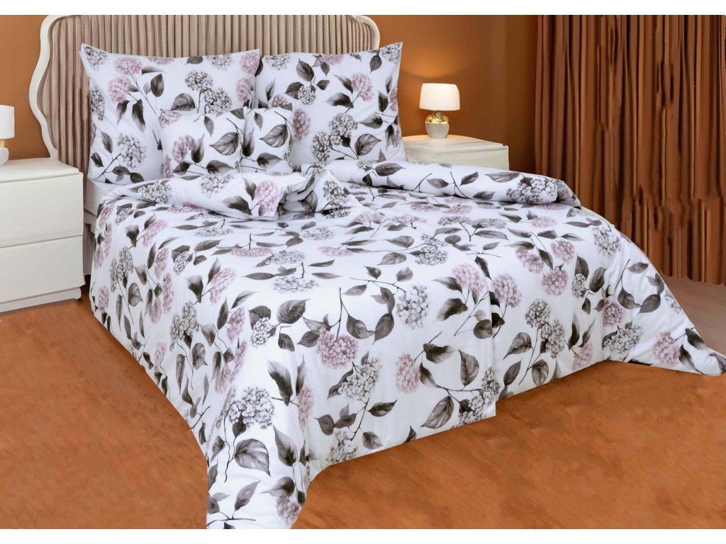 Flanelové povlečení Hortenzie vyniká elegantním květinovým motivem v jemných odstínech růžové, šedé a bílé. Vzor působí vkusně, uklidňujícím dojmem a dodá ložnici harmonii i teplo domova.