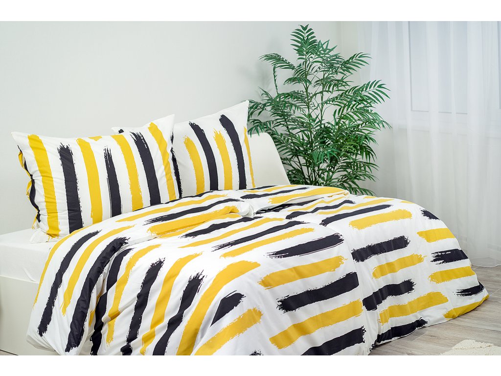 Nechte se překvapit odvážnou kombinací černých, bílých a žlutých barev. Moderní vzor pro milovníky nadčasové elegance. Povlaky na polštáře 90x70 cm a malé polštářky 40x40 cm jsou šité z metráže, díky rozmanitosti vzoru je každý jiný.