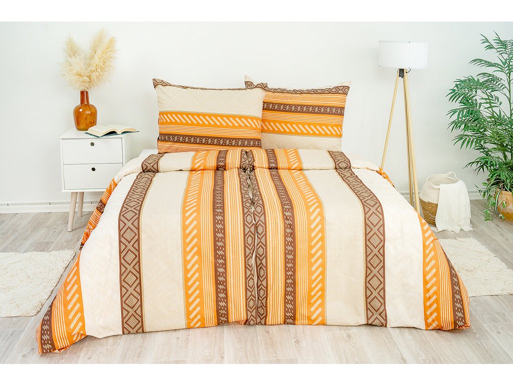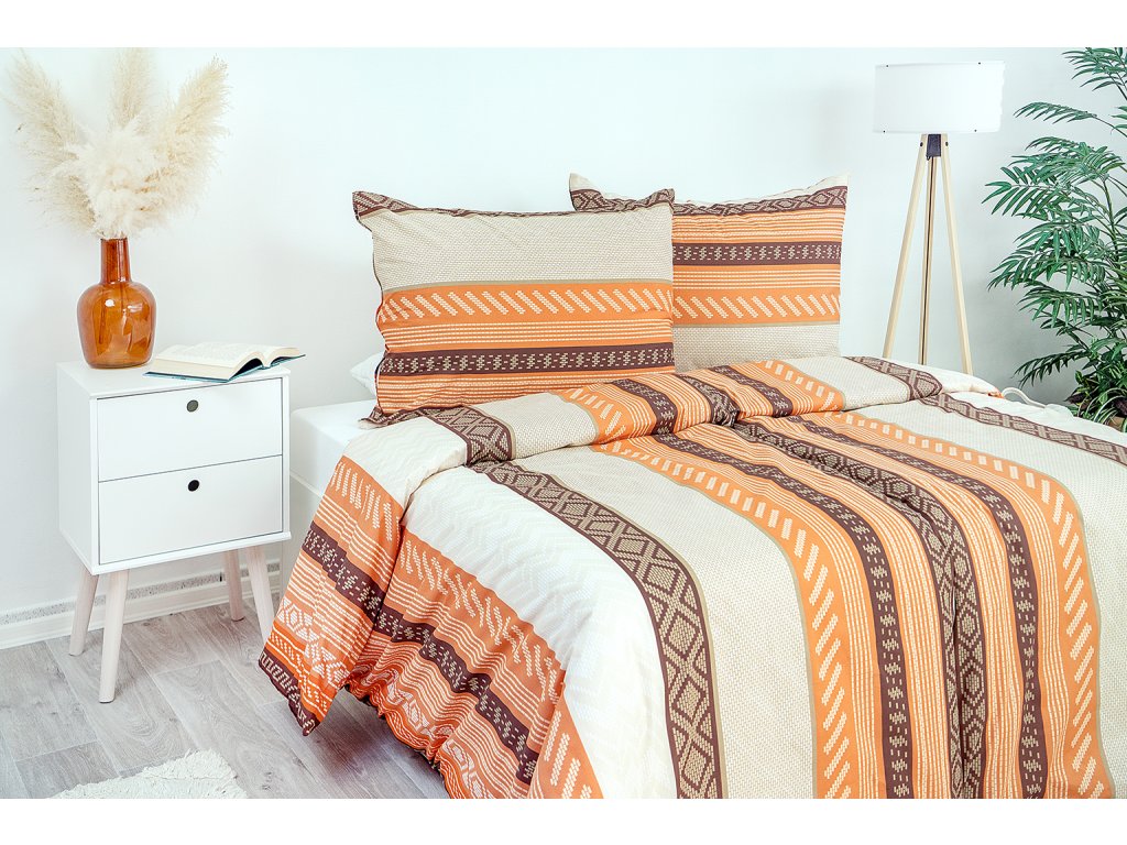 Krepové povlečení v atraktivním barevném provedení, kombinuje cihlové, hnědé a béžové odstíny. Povlečení s nápaditým designem dodá Vaší ložnici noblesní vzhled. Povlaky na polštáře 90x70 cm jsou šité z metráže, díky rozmanitosti vzoru je každý jiný.