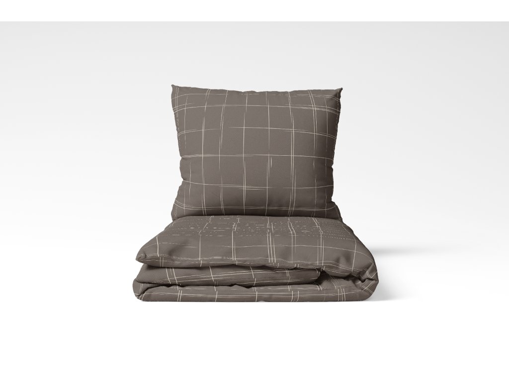 Elegantní ložní povlečení v hnědém odstínu s jemným károvaným vzorem působí nadčasově, klidně a velmi uhlazeně. Tenké, pravidelné linie vytvářejí decentní strukturu, která dodává povlečení sofistikovaný vzhled bez rušivého efektu.