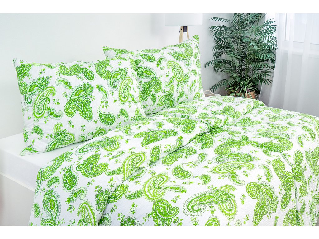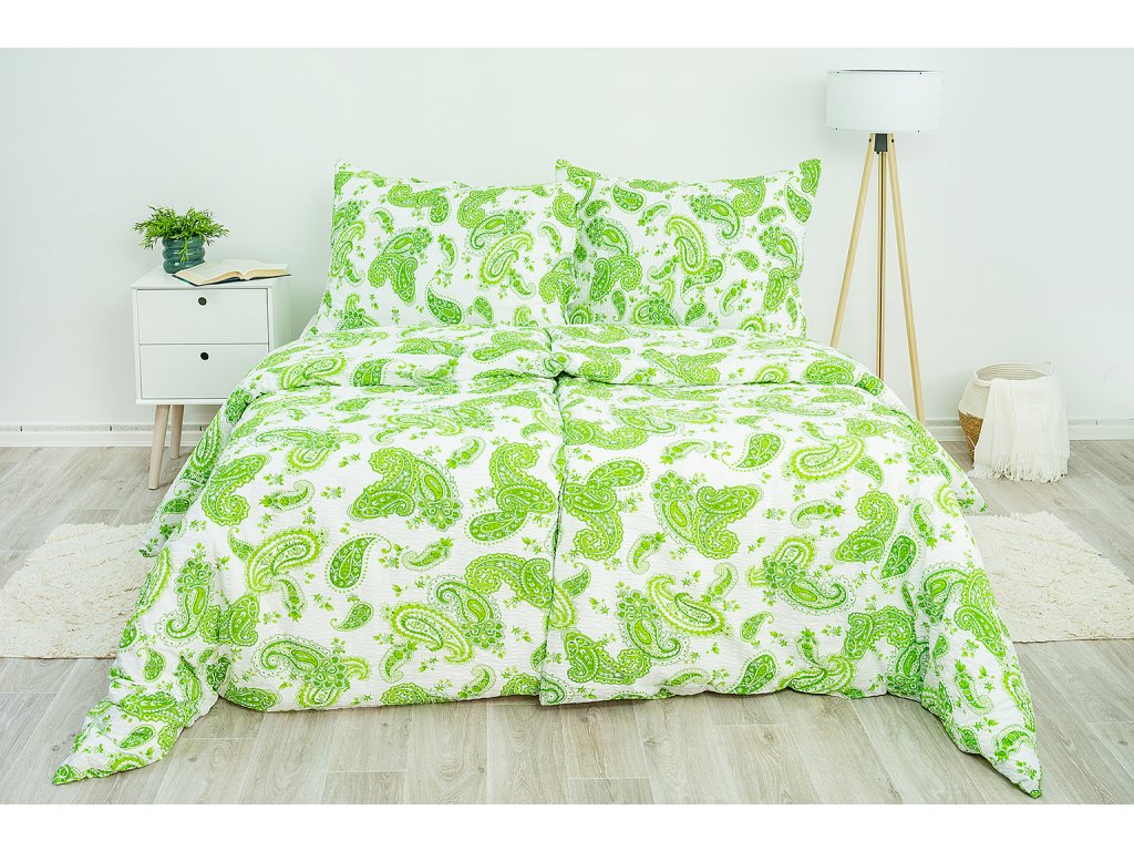 Přírodní motiv v atraktivním barevném provedení, které kombinuje zelené a bílé barvy, vnese do Vaší ložnice svěží závan energie.