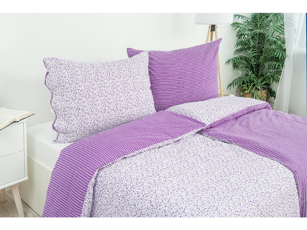 Ložní povlečení krepové Stanex kvítek-pruh fialový (LS196), 220 x 240 + 2ks 90 x 70, Zip