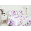 Přírodní motiv v atraktivním barevném provedení, které kombinuje fialkové, bílé, zelené a jemné šedé odstíny, vnese do Vaší ložnice svěží závan energie. Jemné tóny barev a lehkost květin se vzájemně doplňují.
