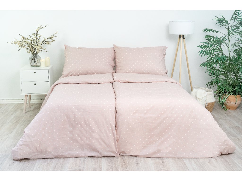 Hravý drobný puntíkový vzor v růžové barvě bude díky své jednoduché eleganci ozdobou každé ložnice.