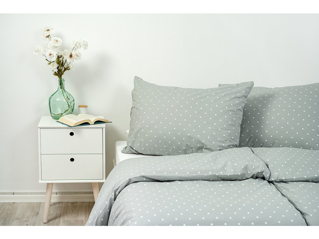 Hravý drobný puntíkový vzor v šedé barvě bude díky své jednoduché eleganci ozdobou každé ložnice.