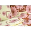Povlečení slunečnice růžová Vás okouzlí svým jemným vzorem růžových květin na světle žlutém podkladu doplněné o čtverce v hnědé barvě. Díky svému originálnímu designu se tak povlečení stane krásnou dekorací Vaší ložnice. Povlaky na polštáře 90x70 cm jsou šité z metráže, díky rozmanitosti vzoru je každý jiný.