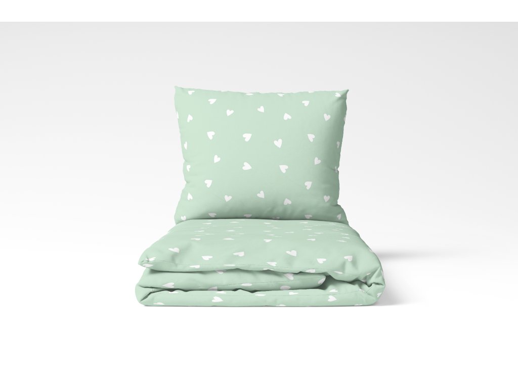 Ložní povlečení srdíčka mint