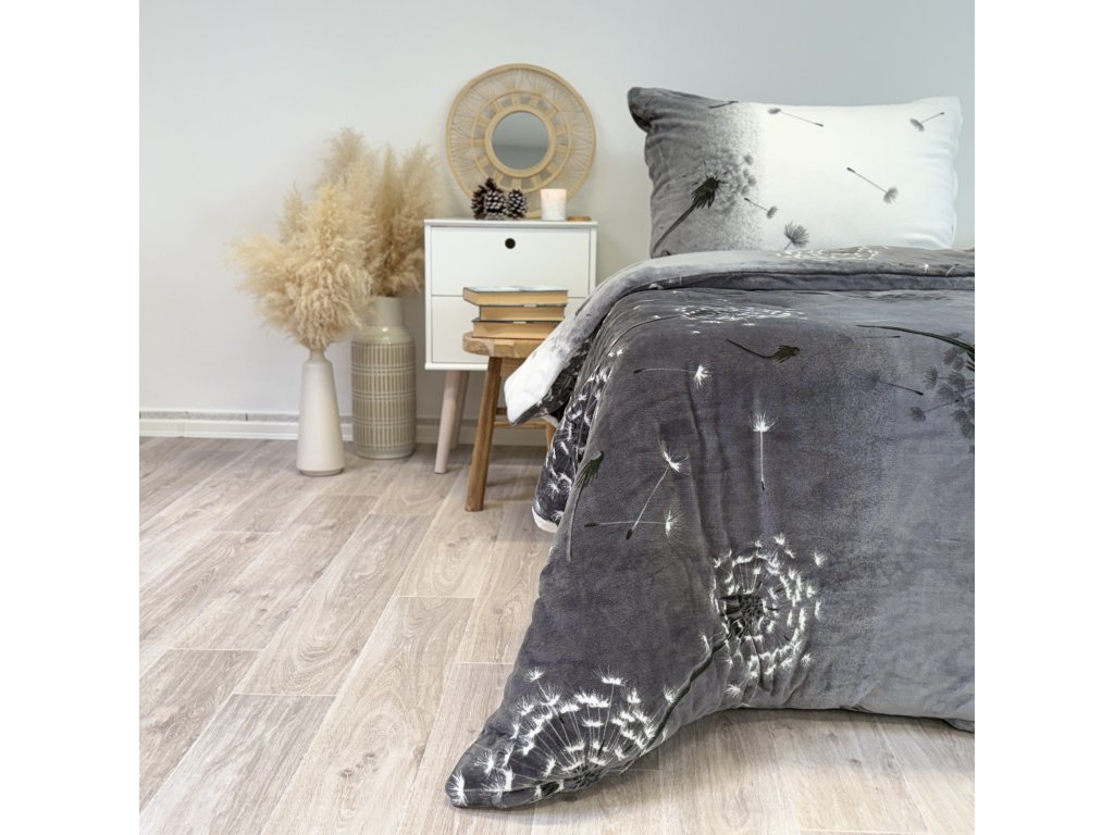 Ložní povlečení mikroflanel pampeliška šedá (LS401), 140 x 200 + 90 x 70, Zip
