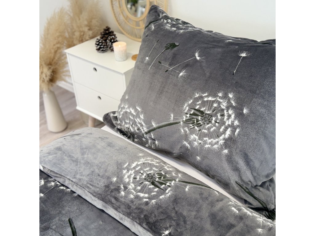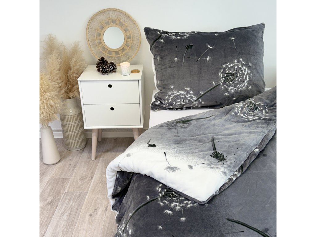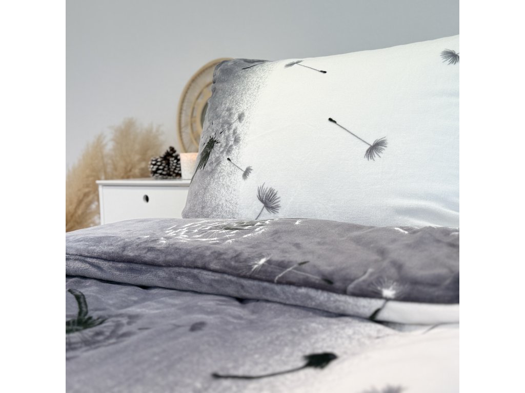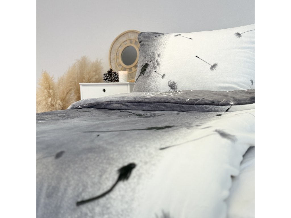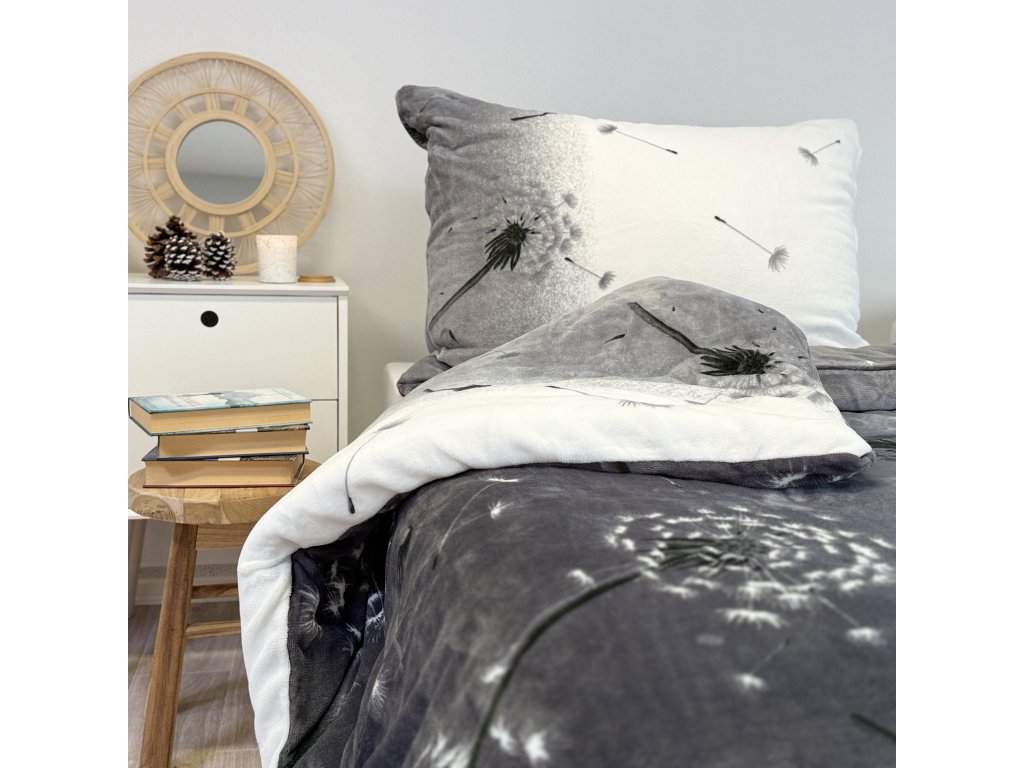 Ložní povlečení mikroflanel pampeliška šedá (LS401), 140 x 200 + 90 x 70, Zip
