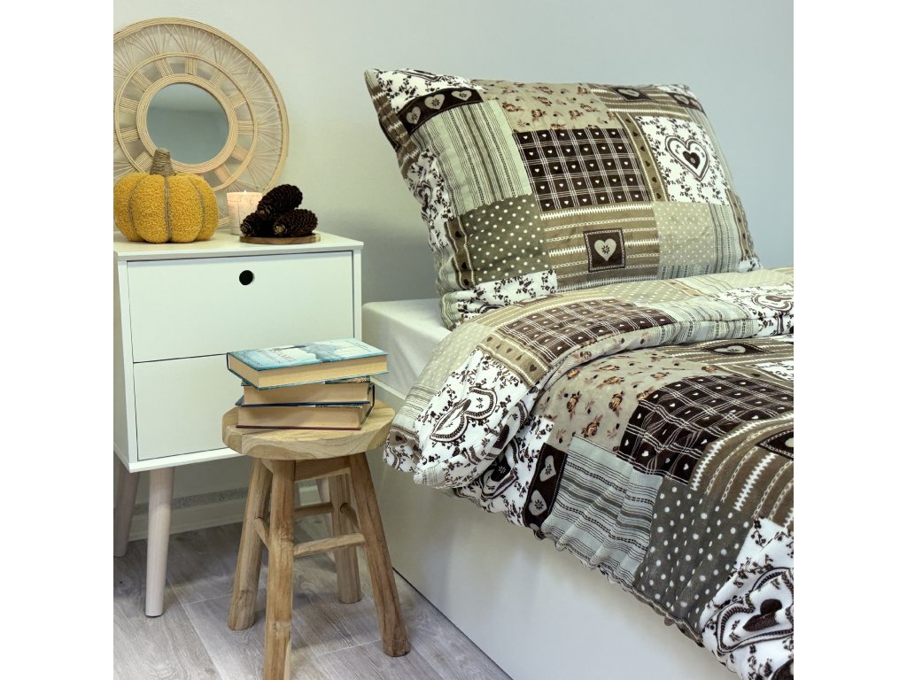 Ložní povlečení mikroflanel pečvork béžový (LS297), 140 x 200 + 90 x 70, Zip