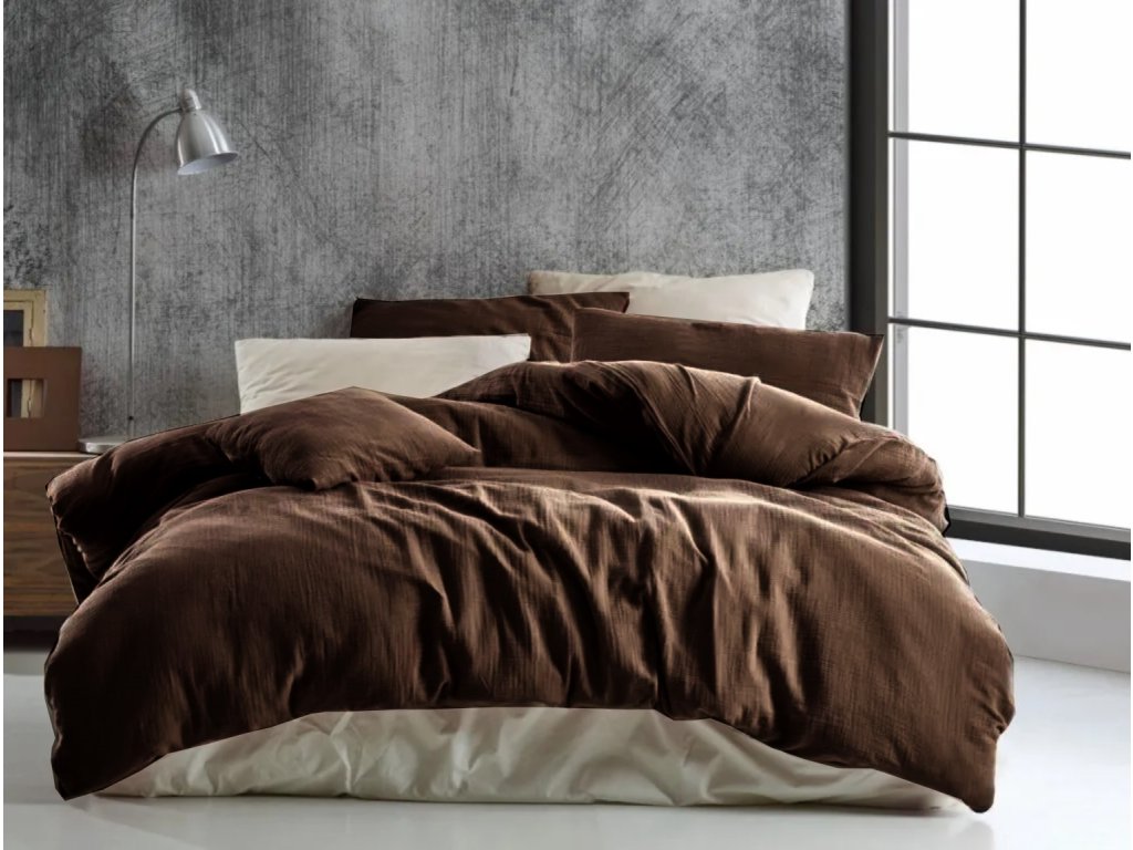 Mušelínové povlečení Stanex čokoládové (LS383), 200 x 220 + 2ks 90 x 70, Zip