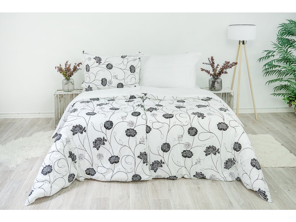 Nechte se okouzlit čistou elegancí oboustranného ložního povlečení astra černo-bílá. Z jedné strany bílý podklad zdobí po celé ploše originální květinový motiv v černých tónech. Druhá strana povlečení je čistě bílá bez vzoru. Černobílá sluší každému interiéru - vsaďte na osvědčenou klasiku v oblíbené kombinaci barev.