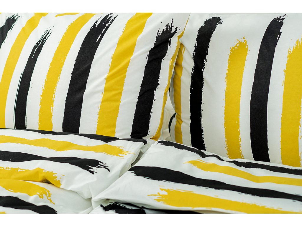 Nechte se překvapit odvážnou kombinací černých, bílých a žlutých barev. Moderní vzor pro milovníky nadčasové elegance. Nápadité a energií sálající povlečení vnese do vaší ložnice dokonalou rovnováhu. Povlaky na polštáře 90x70 cm a malé polštářky 40x40 cm jsou šité z metráže, díky rozmanitosti vzoru je každý jiný.