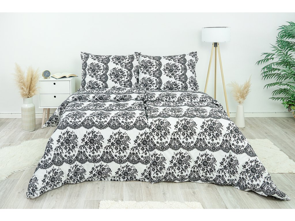 Nápaditý krajkový vzor vyniká díky atraktivní kombinaci bílé a černé barvy. S tímto povlečením bude vaše ložnice vypadat působivě a elegantně. Skvěle se hodí zejména do světle laděného interiéru.