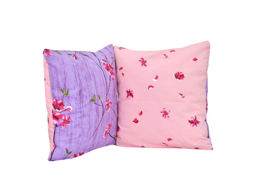 Přírodní motiv v atraktivním barevném provedení, které kombinuje fialové, růžové a zelené odstíny, vnese do vaší ložnice svěží závan energie. Oboustranné povlečení má z jedné strany fialový podklad se vzorem větviček s růžovými kvítky. Druhá strana má světle růžový podklad se vzorem tmavších růžových kvítků a okvětních lístků. Povlaky na polštáře 90x70 a na malé polštářky 40x40 cm jsou šité z metráže, kvůli rozmanitosti vzoru je každý jiný.