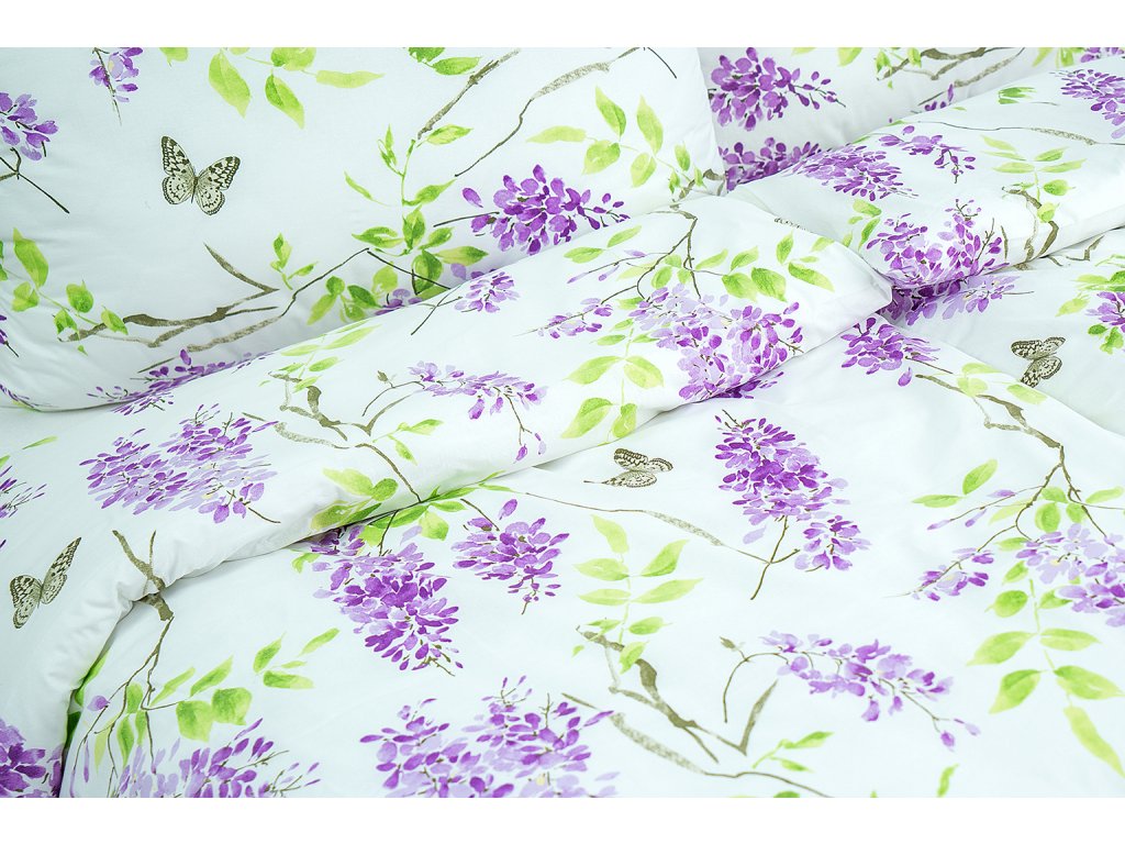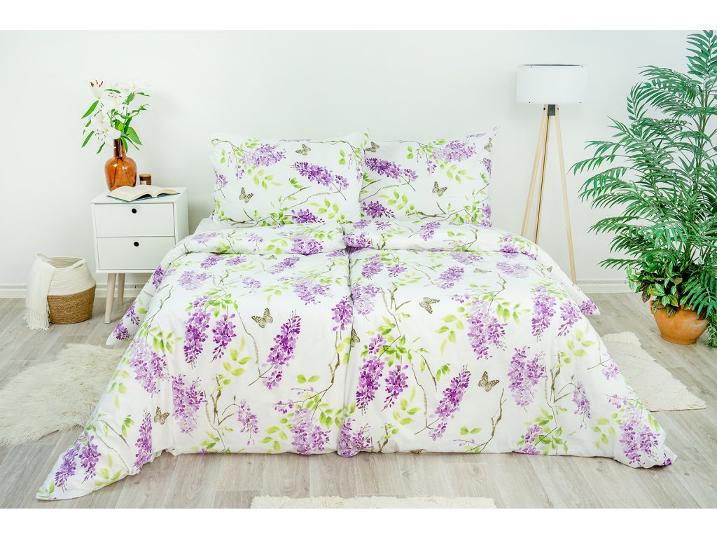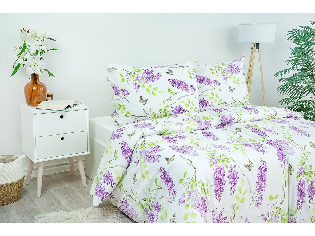 Nechte se okouzlit přírodním motivem šeříkových větviček v atraktivním barevném provedení bílých, fialových a zelených tónů. S tímto povlečením získá vaše ložnice noblesní vzhled.