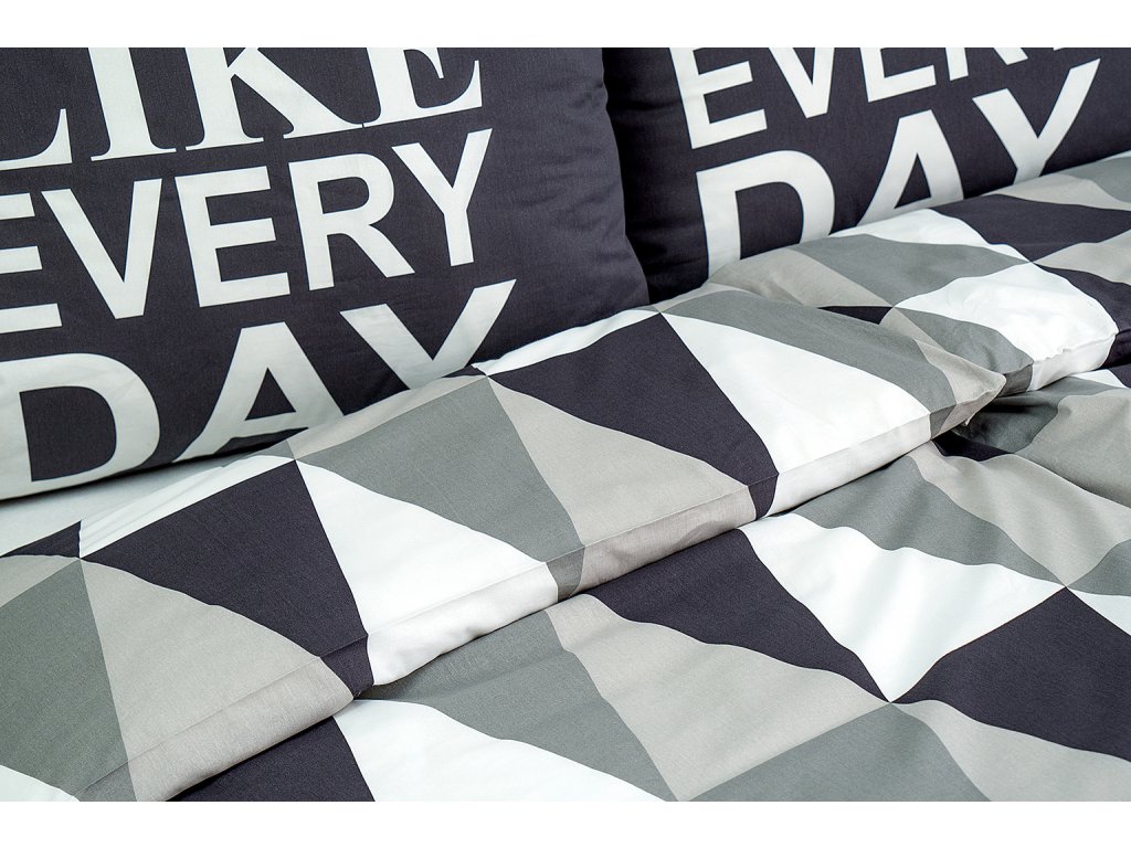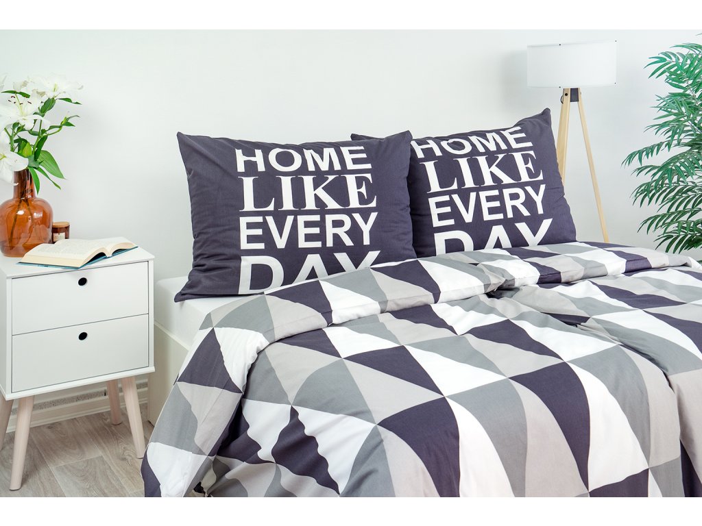 Působivé ložní povlečení home promění vaší ložnici v dokonale elegantní místo. Okouzlí vás svým trojúhelníkovým vzorem a elegantním nápisem na polštářích. Díky svému originálnímu designu a barevnému provedení v bílé a šedé barvě se povlečení stane krásnou dekorací vaší ložnice.
