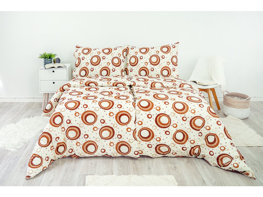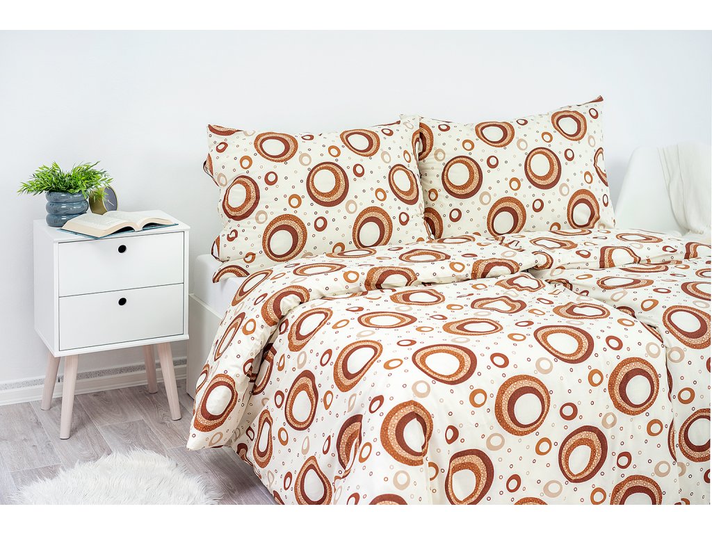 Krémový podklad a na něm poletující rozpustilé kruhy různých velikostí v odstínech hnědé a béžové. Nadčasový design a přírodní barvy jsou doménou povlečení kola hnědá. Mezi zákazníky si tento motiv našel mnoho příznivců.