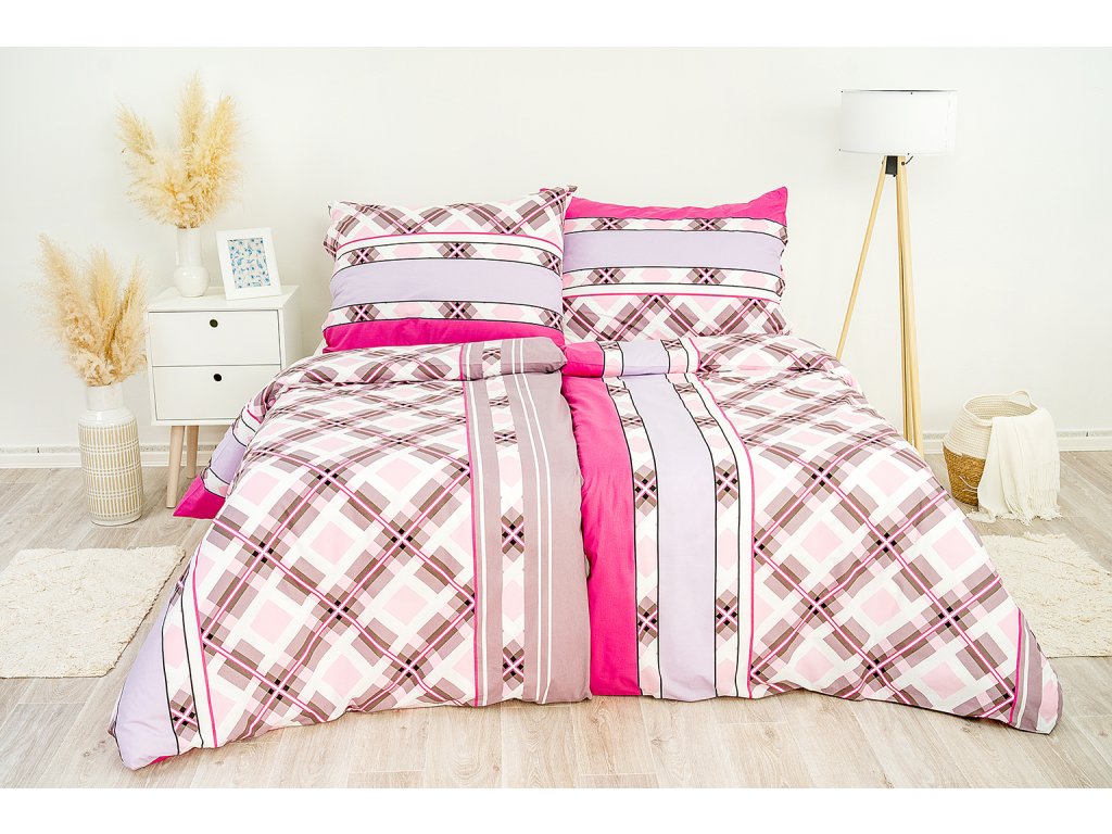 Bavlněné povlečení s moderním károvým vzorem v jemných odstínech, krásné oživí Vaši ložnici. Povlaky na polštáře 90x70 a na malé polštářky 40x40 cm jsou šité z metráže, díky rozmanitosti vzoru je každý jiný.