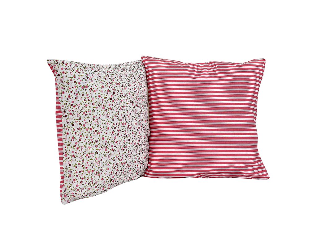 Povlak na polštář bavlněný Stanex kvítek-pruh červený (LS195), 40 x 40 cm, Knoflíkové