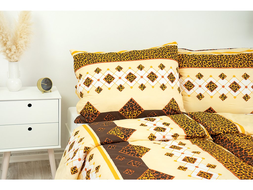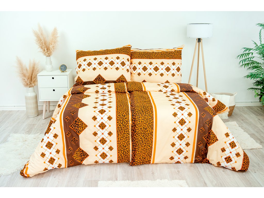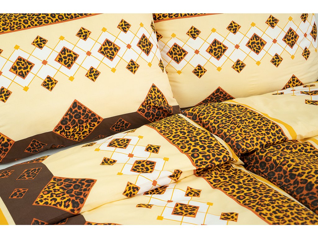 LAURA je povlečení, v němž se prolíná elegance a vášeň. Podklad je tvořen z jemných odstínů béžové a hnědé. Pruhy a čtverce s gepardím vzorem jsou výrazným kontrastem, který dodá tomuto povlečení jedinečnost.
