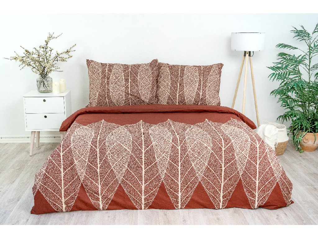 Přírodní a zemité barvy jsou nadčasové a nikdy z módy nevyjdou. Bavlněné povlečení kombinuje světlé a tmavé odstíny a přírodní motivy listů.