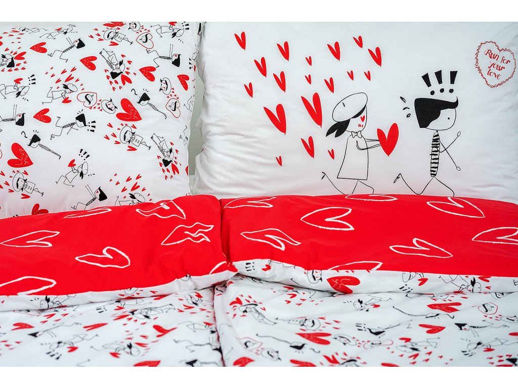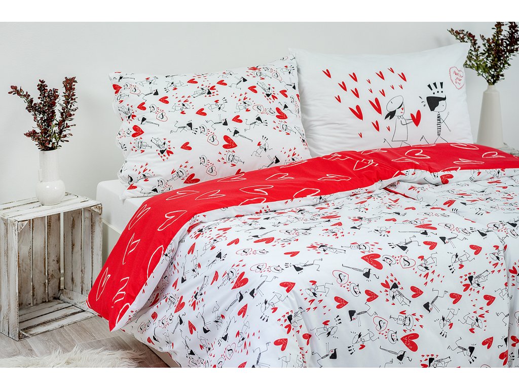 Jste romantik tělem i duší? Pak si pořiďte bavlněné povlečení Love. Toto povlečení vnese romantický nádech do každé ložnice. Povlak na přikrývku má z jedné strany vzor drobných postaviček a srdíček na bílém podkladu a z druhé strany červený podklad se vzorem srdíček. Povlak na polštář 90x70 má z jedné strany bílý podklad a obrazový vzor a z druhé strany bílý podklad s menším vzorem. Povlak na polštářek 40x40 má z jedné strany bílý podklad se vzorem postaviček a z druhé červený podklad se vzorem srdíček.