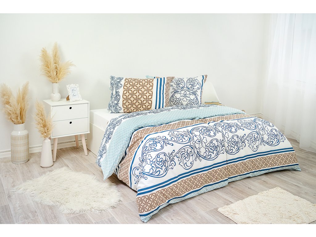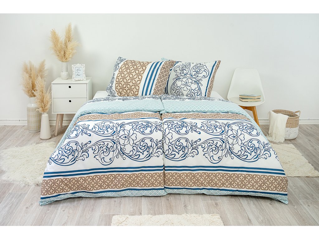 Dáváte přednost decentním tónům? Pak vám bude hrát toto povlečení do noty. Uklidňující hnědé, modré, a bílé tóny zaručí Váš pohodlný a klidný spánek. Tento vkusný vzor potěší nejednu romantickou duši a bude se hodit především do světle řešených interiérů. Povlaky na polštáře 90x70 cm a malé polštářky 40x40 cm jsou šité z metráže, díky rozmanitosti vzoru je každý jiný.