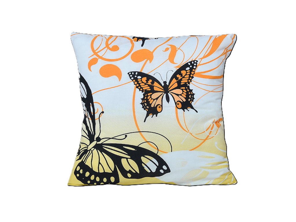 Povlak na polštář bavlněný Stanex motýl žlutý (LS187), 40 x 40 cm, Knoflíkové