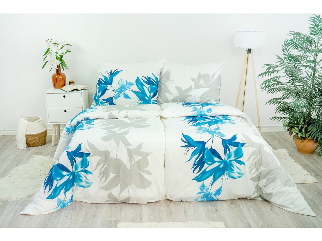 Čistotu a smysl pro eleganci vyzařuje vzor povlečení Nela tyrkysová. Přirozené odstíny modrých květů vynikají v harmonické kompozici na příjemném bílém podkladu. Okouzlující hra něžných odstínů se snoubí s elegancí přírody. Nechte vstoupit dokonalost do své ložnice. Povlaky na polštáře 90x70 cm a malé polštářky 40x40 cm jsou šité z metráže, díky rozmanitosti vzoru je každý jiný.