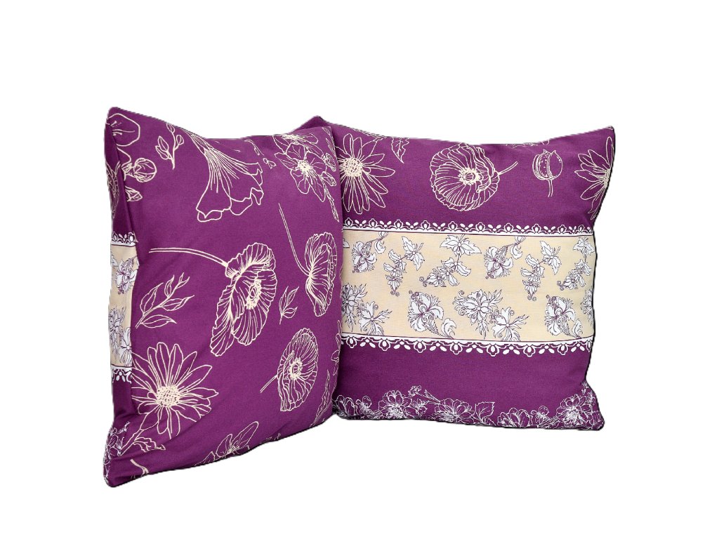 Motiv květin v atraktivním barevném provedení, které kombinuje fialovou a krémovou barvu vnese do Vaší ložnice svěží závan energie. Povlaky na polštáře 90x70 a na malé polštářky 40x40 cm jsou šité z metráže, díky rozmanitosti vzoru je každý jiný.