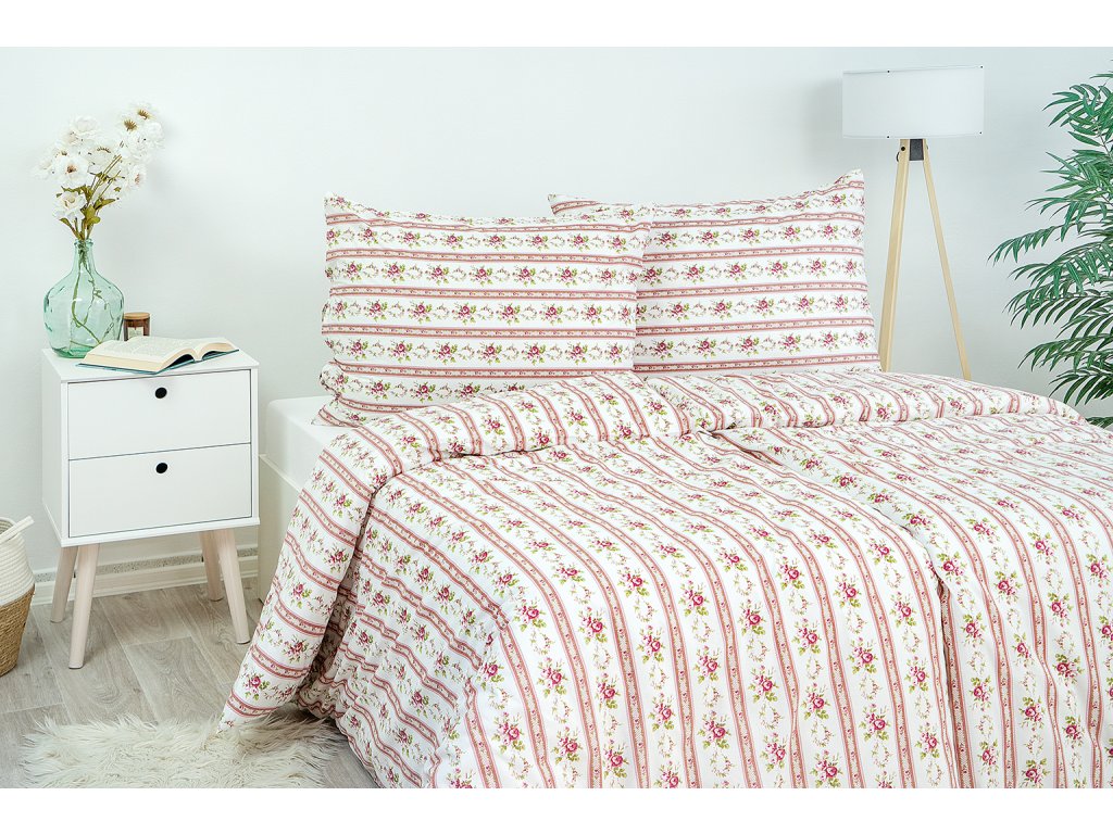 Místo, kde spíme, by nemělo být jen pohodlné, určitě musí i hezky vypadat. Hravý a zároveň romantický motiv růžiček a elegantních proužků vstoupí do Vaší ložnice s povlečením retro růžové. Vzor v krásných růžových, bílých a zelených barvách se snoubí v elegantní a originální design.