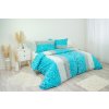Povlečení v moderních tyrkysových, bílých a šedých odstínech a nápaditém designu. Toto stylové povlečení ocení všichni ti, co mají rádi nevšední a nadčasové vzory. Vynikne v každém interiéru. Povlaky na polštáře 90x70 a malé polštářky 40x40 cm jsou šité z metráže, díky rozmanitosti vzoru je každý jiný.